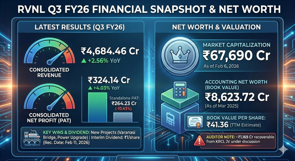 RVNL Results Net Worth को लेकर हाल के दिनों में निवेशकों और बाजार से जुड़े लोगों के बीच चर्चा तेज है। मीडिया रिपोर्ट्स और आधिकारिक दस्तावेजों के अनुसार, रेल मंत्रालय के अधीन सार्वजनिक क्षेत्र की कंपनी Rail Vikas Nigam Limited (RVNL) की वित्तीय स्थिति, परिसंपत्तियां और तिमाही नतीजे लगातार सुर्खियों में बने रहते हैं। हालिया RVNL results जारी होने के बाद कंपनी की नेट वर्थ और ग्रोथ को लेकर नई जानकारी सामने आई है।